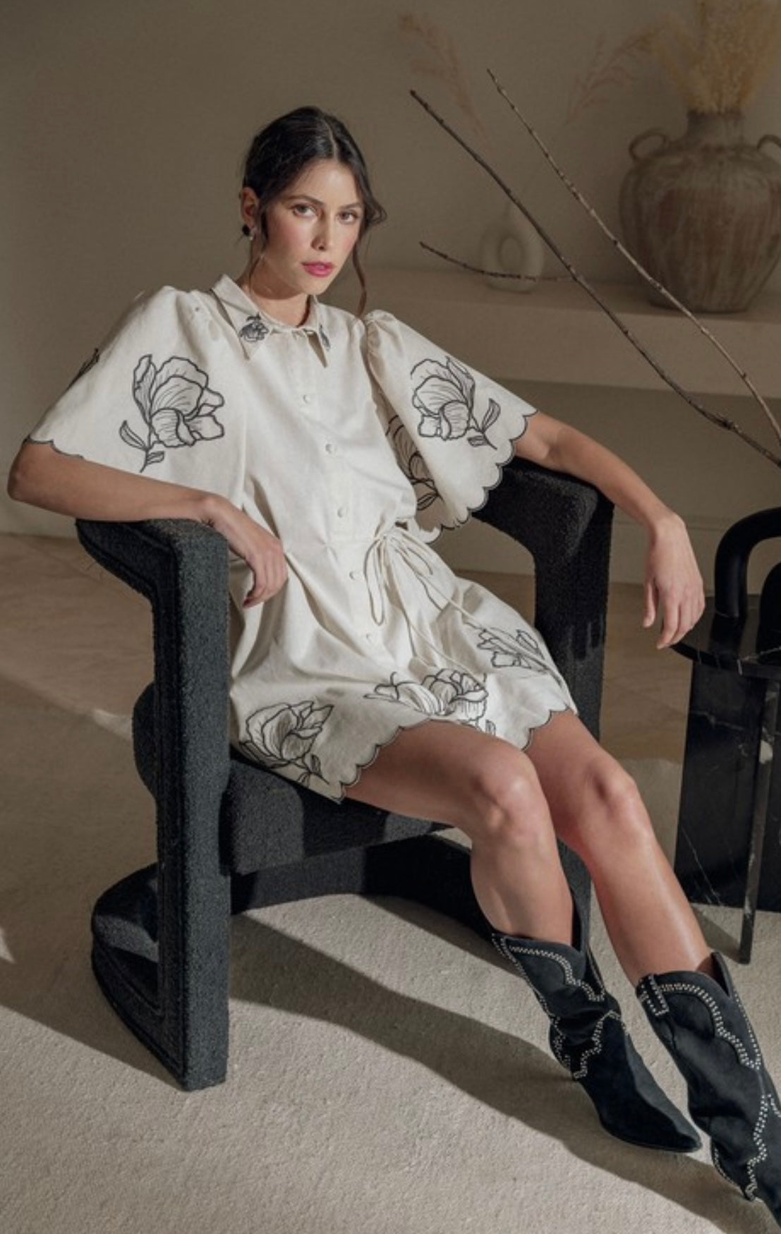 3/4 Dolman Sleeve Tie Front Mini Dress